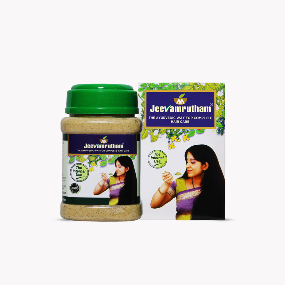 The ingredients of Jeevamrutham are selected from time tested. Ayurvedic rejuvenators like Chyavanaprasm, Sivagulika, Brahmarasayanam, Narasimharasayanam and Saraswathagritham. Most of the ingredients support the immune system to fight against diseases. Jeevamrutham helps in digestion and improves circulation. It provides many benefactor functions among which hair care is only one. ‘Jeevamrutham’ in this unique combination provides a wide range of benefits and pacifies vitiation of the Thridoshas. Honey and ghee act as a medium to carry the potency of the ingredients to the cell cavities in highly efficient manner, than any other conventional medium. Research studies pertaining to the activities of the ingredients are available to all users as a background material on request. Jeevamrutham doesn’t contain any preservatives or artificial flavors of color’s.